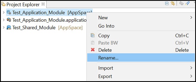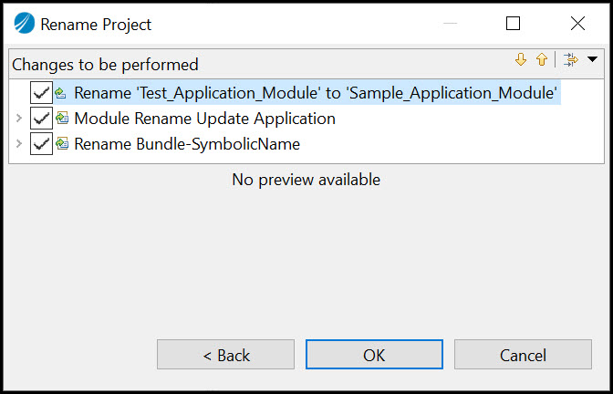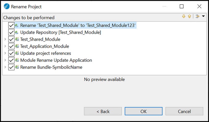 Important: TIBCO recommends to keep all the check boxes in the Rename Project dialog selected. - Click